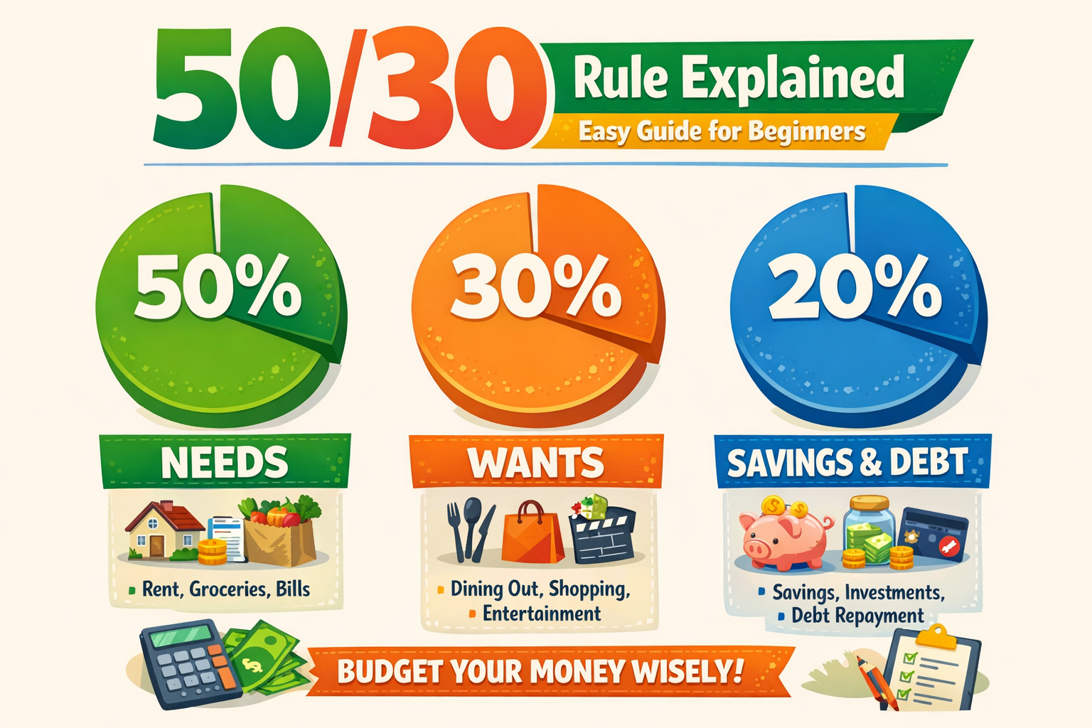 50/30/20 rule beginners ke liye ek simple aur powerful budgeting framework hai. Yeh aapko paison par control deta hai aur future ke liye financially strong banata hai.